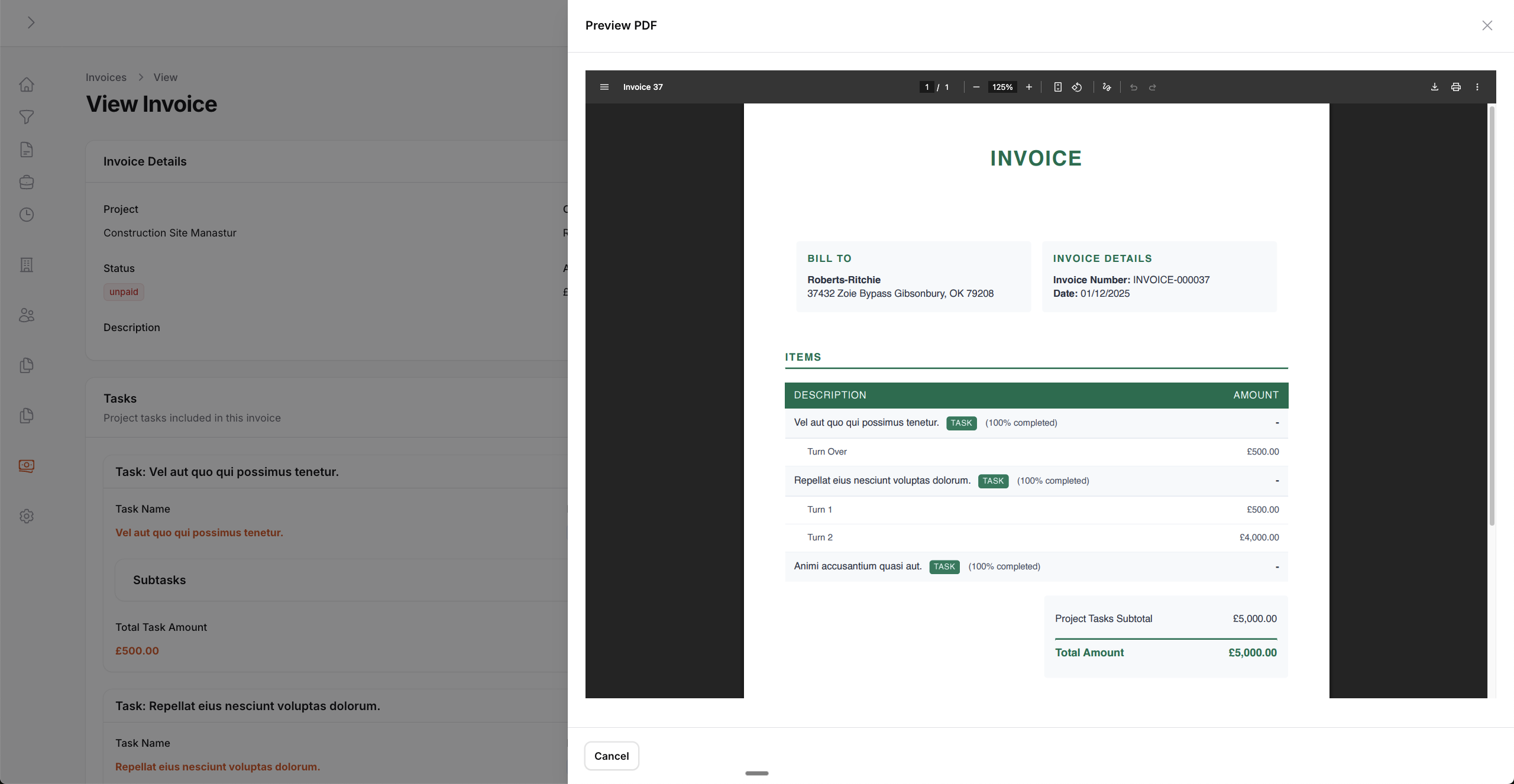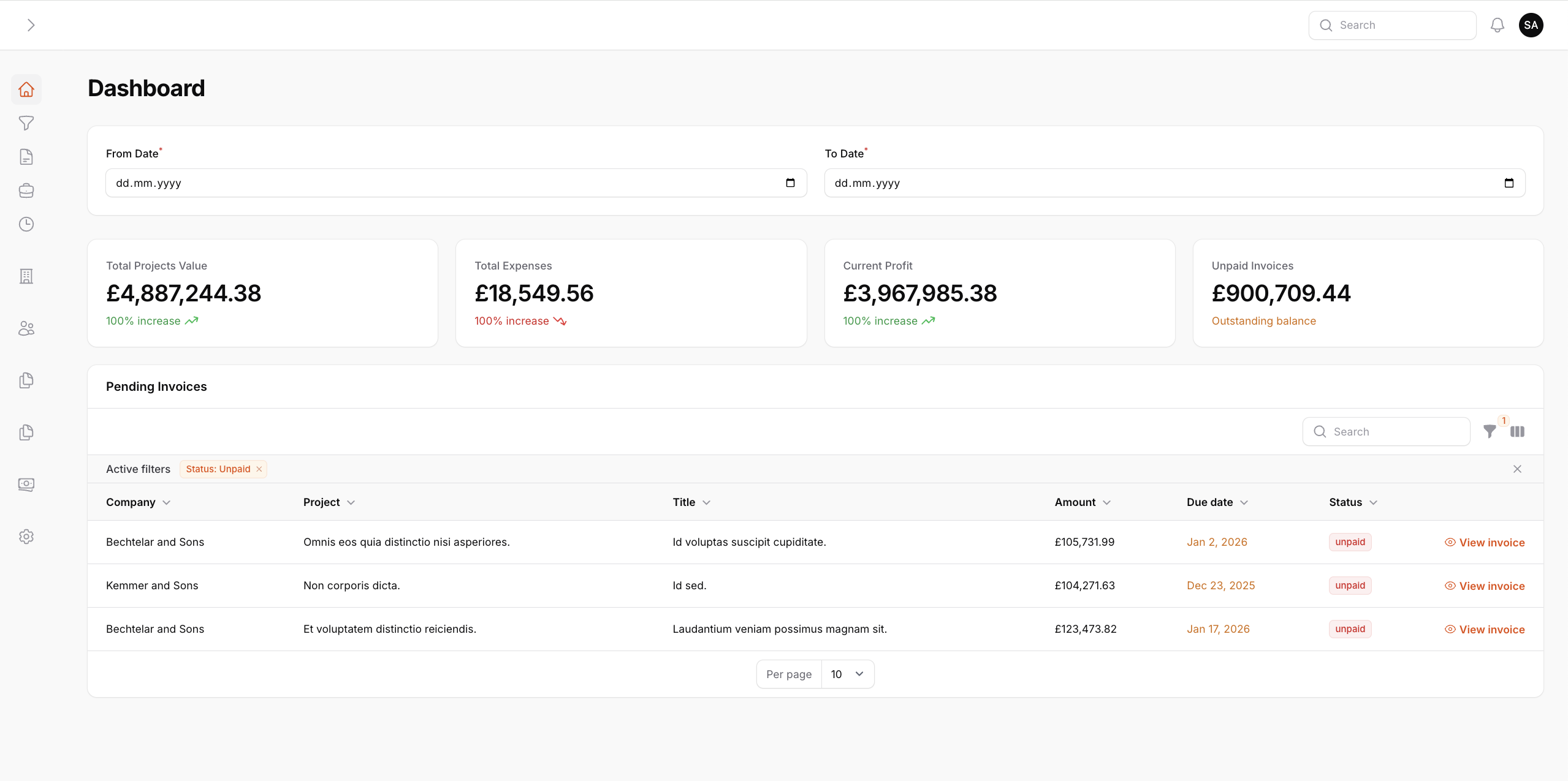 Plățile sunt linkate la facturi cu update automat al statusului (unpaid → partially paid → paid). Dashboard-urile oferă vizibilitate în timp real asupra profitabilității.